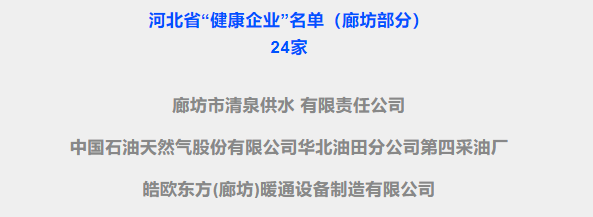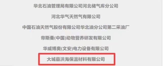 10月31日,在河北省工業(yè)和信息化廳發(fā)布的河北省省級健康企業(yè)名單中,大城縣洪海保溫材料有限公司被正式認定為“省級健康企業(yè)”。